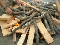 薪を上から載せて強火で焼いて