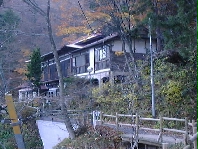 露天風呂までは急な階段を降りていき、建物の外に出て渓流沿いです。紅葉が終わりかけの山を見ながらのんびり入りました。