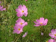 道端にはコスモスの花が咲きそろい、秋の風にゆれていました。